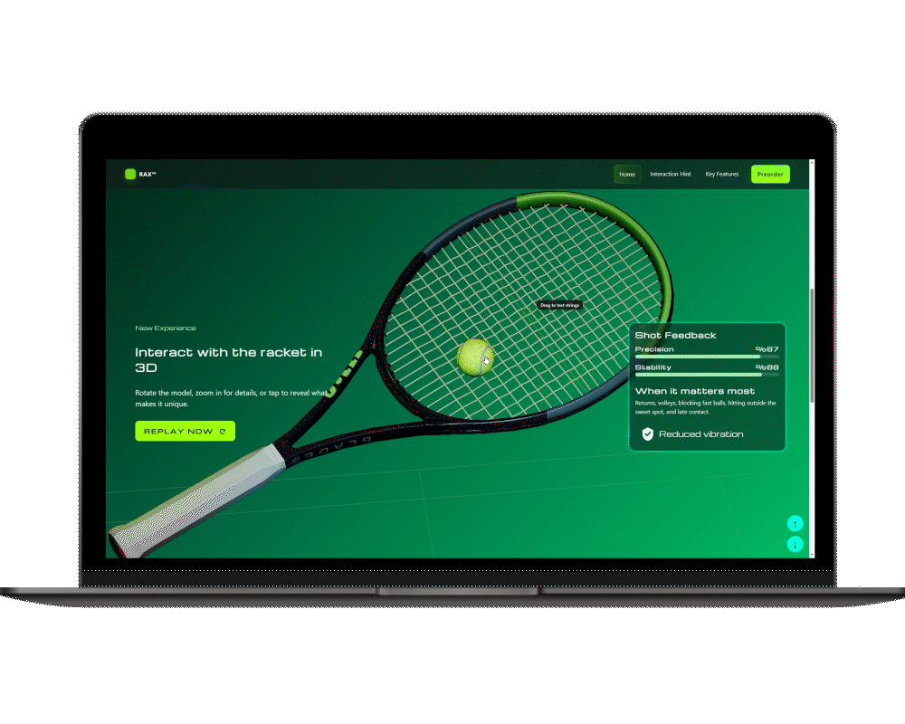 Hands-on product story in the browser: Tech-View toggle, specs & materials tabs, and scroll camera choreography.